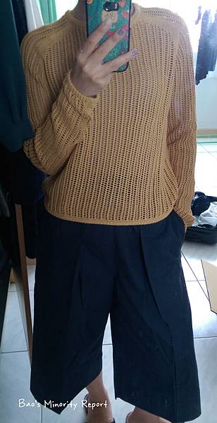 五分袖的網眼上衣我拿的是Navy,不過實品比想像中深哪...
