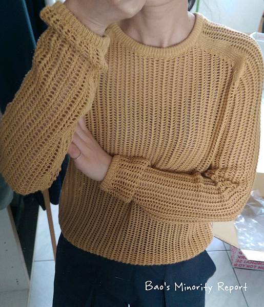 這件長袖網眼上衣我拿的是M,因為看照片覺得領口偏小、怕會卡頭。