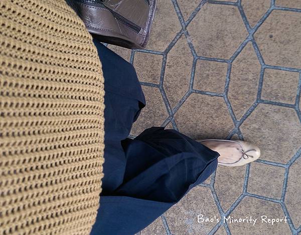 牛津寬褲拍起來顏色也是有點跑掉,就不特寫了,我覺得肉眼看起來算是有點藍綠色調。褲長還不錯,本來擔心太短會露出小腿肌,戰戰兢兢地比了比、發現是在很剛巧的位置,讚!比全長得更適合我(研判應該會拖地...)