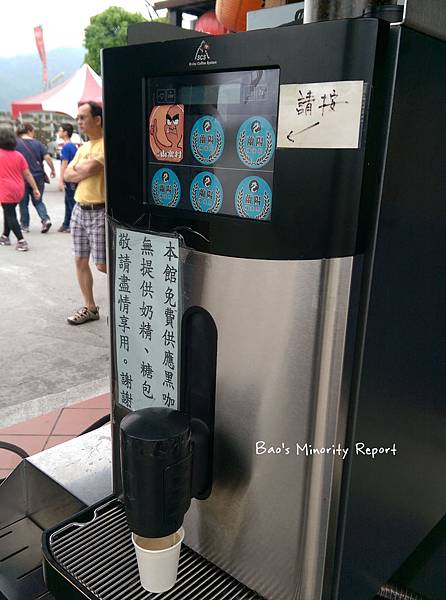 廣場上往亞點蛋糕密碼館的方向有幾個小攤子,有一台可以無限暢飲黑咖啡的咖啡機~
