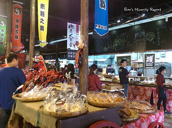 格局和四圍堡車站一樣(不過這名字取得超厲害、讓人很想一探究竟),只是窯烤山寨村的紀念品只有一咪咪,四圍堡那兒因為打著「Hello Peter」的名號所以多了魔法相關的周邊商品,而整體裝潢走斜角巷與霍格華茲學院路線(看不懂得請複習正版Harry Potter)、乍看也厲害多了。若真要在模仿別人風格這點做比較的話,我想山寨村應該落敗吧... 好歹四圍堡看得出來在學誰 XD