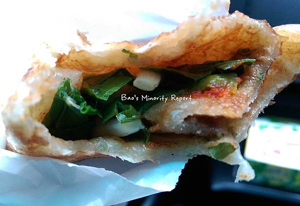 或許他們可以思考一下新的工作模式:一位負責不斷製造餅皮──加蛋與不加蛋──擺成兩堆、然後把蔥炒香,一位可以幫客人點餐、一邊做後處理(加料加醬捲起來),順便還可以結帳。當然現點現做熱呼呼的應該最好吃,不過動線好出貨順的話,應該不會冷卻到哪兒去,起碼顧客可以縮短不少等待時間。