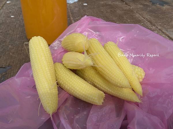 笨蛋史蓋桑一開始還認真剝了好幾支玉米筍,等我收起相機回神才制止他...