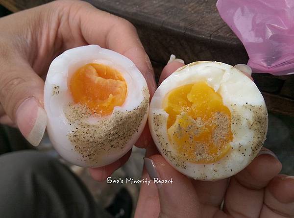 上次去清水地熱帶的是山葵胡椒鹽一小罐,用不完就帶回家煮菜用。我們隔壁的一對男女剝蛋的時候一直對我們這兒投以羨慕的眼光,因為他們的鹽巴只有一小包啦!哪像我們這一大包、配八根玉米筍還有六顆蛋還綽綽有餘,超級得意(感謝辛苦的司機兼採購)。