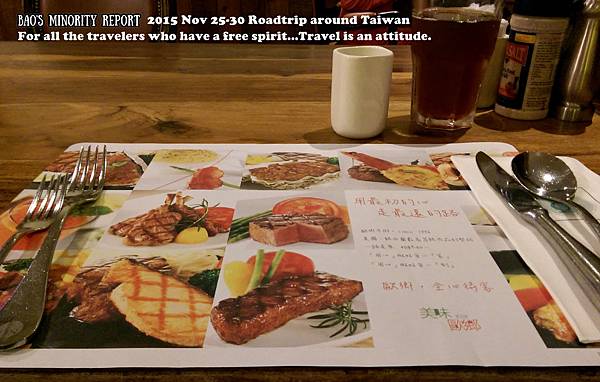 沒堵車的南迴公路一路順暢,在快接近台東市區時訂了公教會館,安置完行李立刻殺到隔壁的歐鄉牛排館碰運氣~之前屢屢向隅這次終於可以踏入用餐!吃完7-11的早餐組合之後只有補給了紅豆餅與燒冷冰,算起來也是餓了一天啊,終於可以好好安心地坐下來進補