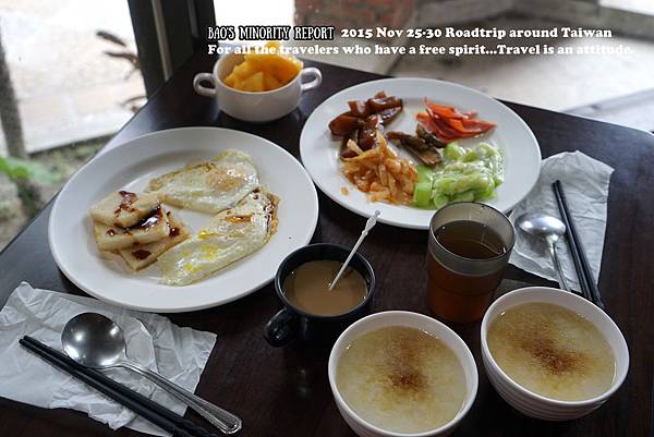 台東公教會館的早餐是自助式的,簡單的菜色,舒適的環境,除了房客之外也看到不少附近的居民來此享用。隔壁桌的喇嘛們桌上擺了餐盤,每樣食物都堆成了一落小山... 感覺餓很久了?反觀我和史蓋桑戰力實在是有夠弱的