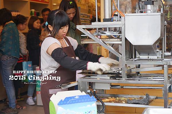 在觀山牧區裡的紀念品店待了一會兒,空手而出後回到草原南端賣店,看到新鮮蛋捲現場製作!