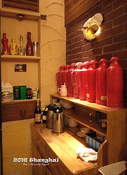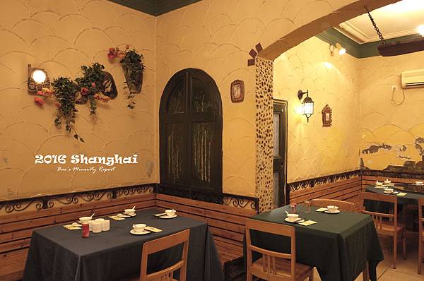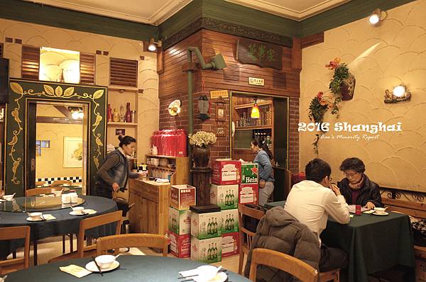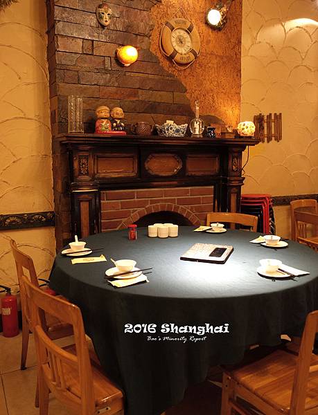 那天下午結束了思南路的行程(說實在比想像中空虛好多),轉了地鐵來到肇嘉浜路站,又步行了約十五分鐘,抵達餐館時才四點五十分。距離表定營業時間還有十分鐘,不過裏頭的燈已經亮了,派弟弟打頭陣進去探問,結果竟然可以入座了。於是我們開心地跟冷風說再見,躲進溫暖的室內。