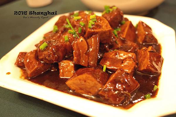 最期待的這道紅燒肉豆干等的有點久,不過豆干很嫩,很下飯的一道菜,對比書中敘述、完全沒有失望:「本幫菜必點的紅燒肉,這兒是配以馬橋豆干共同燒煮,對喜愛吃豆腐的我們來說,這可是一個天大福音。」