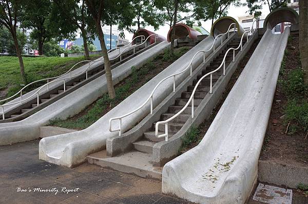 作為全台灣第一個以河川為主題的教育中心,主題為老街溪整治過程與環境生態介紹,而且還有現在少見的大型磨石溜滑梯!早就想不起來前一次玩溜滑梯是多久以前了?更何況現在公園裡幾乎都只剩下塑膠的版本。