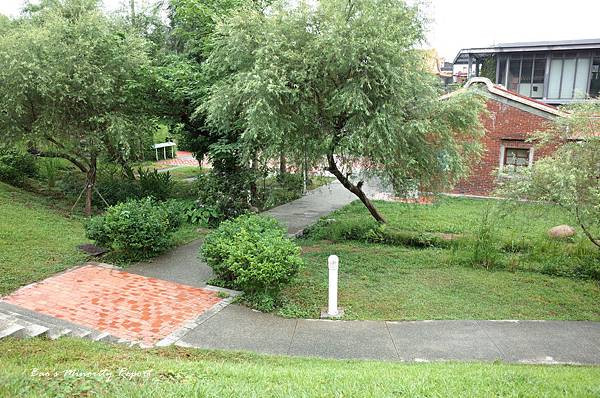 穿過時光隧道後,映入眼簾的是錯落在綠地中的紅磚建築。