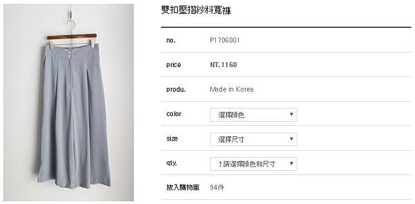 因為曾經吃過韓貨的虧,想到的時候就會檢查一下收到的衣服是否完善,不過通常我在第一時間都很遲鈍。這回發現褲頭的脫漆扣子很訝異,想說難道是故意的仿舊設計?不會是我又沒認真看敘述了吧?於是回頭去爬官網: