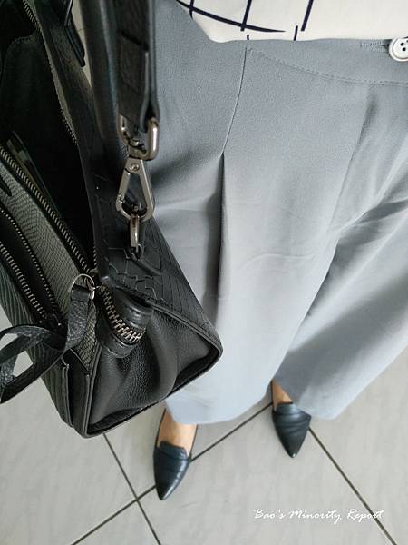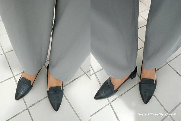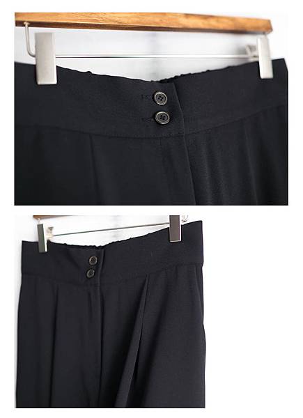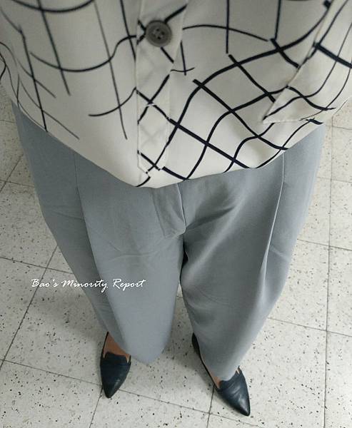 如果不理會上面那些枝枝節節,這件寬褲真的挺推的喔!寬版的褲頭雖然很好看但不夠挺,如果以我的腰圍略鬆的話,沒有貼著身體的部分看起來虛虛飄飄的,也許是布料材質的關係使然,但算是敗筆,小可惜。