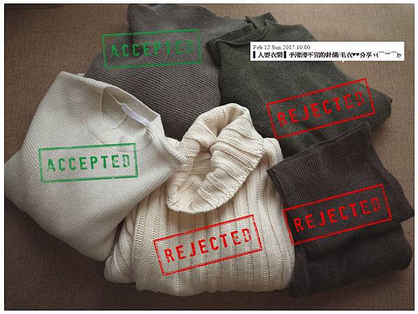 當購物的衝動褪去,哪些是歷經考驗後仍能留下的呢?今年總共入手了五件針織毛衣 (希望到底為止了吧哈哈),算算去年的戰利品正好丟了五件,打平。有時候會想,如果那些網紅部落客們在清衣櫥準備二手拍時,可以順便發個文列出淘汰這些單品的理由,一定十分精彩!如果還可以跟當初鼓吹大家不+1不行的文章並列對照,那才真的是值得收藏、一讀再讀的好文。 不過這種自打嘴巴的事情到底誰會做呢? 實在滿好奇的...還是自己檢討自己比較快啦