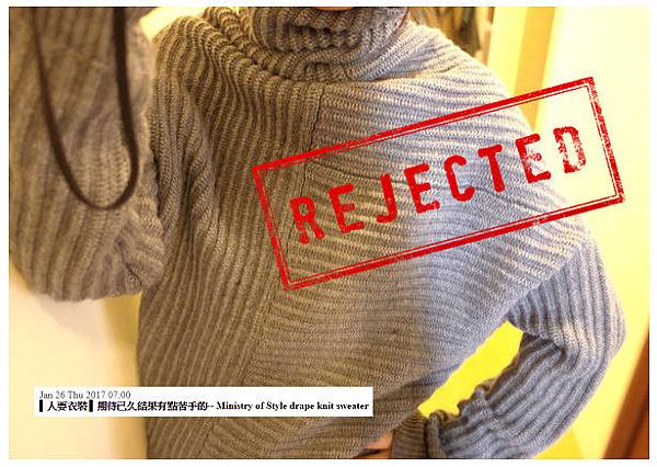 說實在淘汰這件Ministry of Style drape knit sweater,我自己一點也不意外,當然也是掙扎滿久,畢竟當初苦苦追尋了一陣子、而且也不便宜。不過也因為這件的教訓太慘烈,去年底各種國外電商的跳樓大拍賣,啊是黑五雙11感恩大回饋,完全激不起我的興趣 (也可能是之前信用卡被盜刷怕到了)
