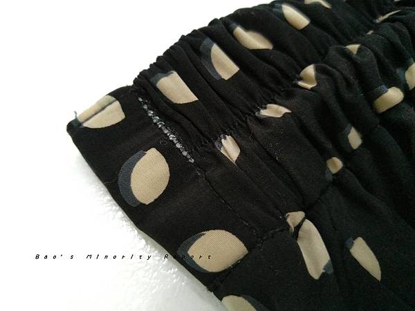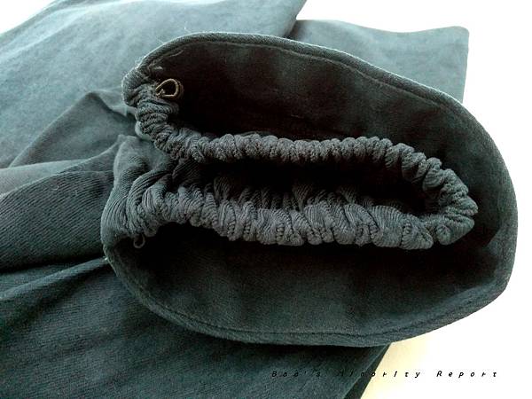 本來有考慮把多餘的鬆緊帶剪掉、然後再藏起來,後來實在有點懶,再加上黑色鬆緊帶其實不顯眼,乾脆就露出兩個小耳朵吧!反正翻成正面後也看不到,未來如果洗滌之後鬆脫,也方便直接修補。