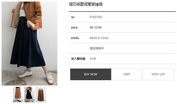 最後要來分享的這件是韓貨,網店是Cozyfee,特點是燈芯絨材質的寬褲裙。