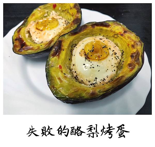 以結果論,就是失敗,蛋體與酪梨完全分離 (理想狀態是水乳交融),連酪梨都出現幾處焦黑!更慘的是,加熱太久的酪梨嚐起來的確是微苦... 真的是過猶不及,雖然比起生酪梨的味道還是好太多。