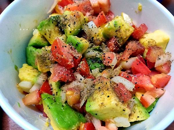 留半顆作為隔日早餐的酪梨牛奶,另外半顆就做成沙拉囉!