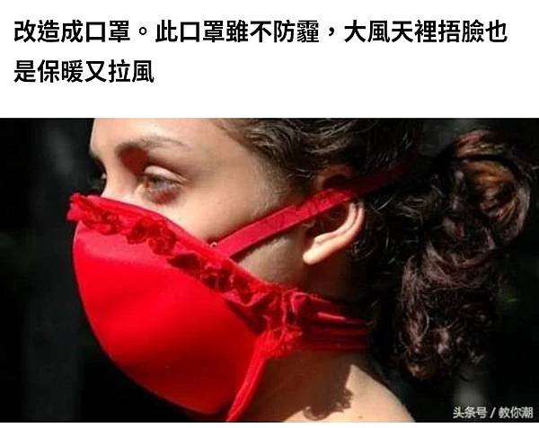 前陣子新冠肺炎疫情嚴峻並且鬧口罩荒的時候,的確看到網路上流傳著用內衣改造、沒魚蝦也好的方式,但誰會這樣上街啊?這跟CSD出的姐姐蕾絲口罩是完全兩碼子事欸。