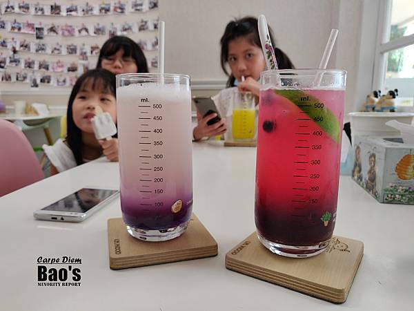 感謝老闆主動喬出窗邊大桌給我們,也感謝被請到隔壁桌的獨行學生,在亟欲解熱之際享用的冰品冷飲真是人間至善美味。降溫後的四姊妹重啟笑臉模式,連三姊的電力也恢復了兩成。