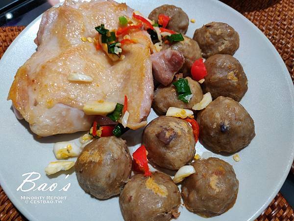 香煎雞腿排與貢丸,某人限定紅吱吱版本。