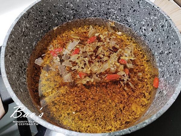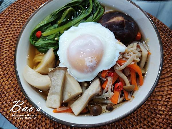 用柴魚片與鰹魚醬油當湯底,再灑幾顆顧目珠的枸杞。