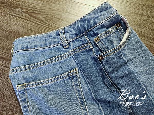後來還注意到後側上緣有一塊突起,可能是版型不順也可能跟我的臀型不合,但這應該比較容易解決,改腰圍時一同調整即可。