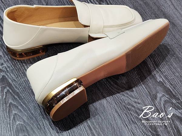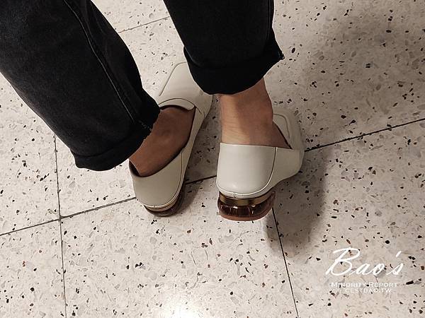 其實當初是想採買黑色方楦才注意這款商品,但我沒辦法接受又是金鏈又是琥珀鞋跟──至今還是有點疑惑這樣設計重點到底在哪裡──所以第一名就給了米白,不怎麼想預購於是擱置,最後讓我遇到現貨加折扣想必是天意,不可違。