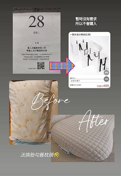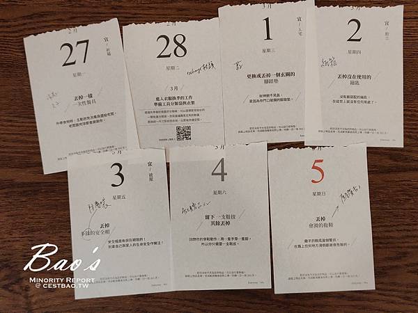 而一日丟一物就好比每天做一點的概念,具有化繁為簡的效果。有點類似把大夢想切割成小目標的做法,差別在於我不確定做完365天之後的變化,反正邊做邊記錄、先開始就對了哈哈
