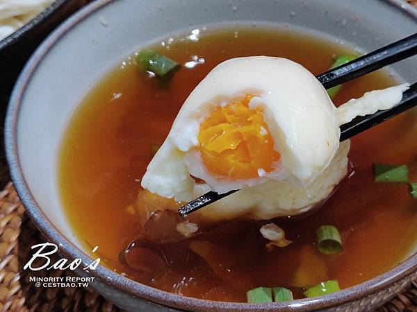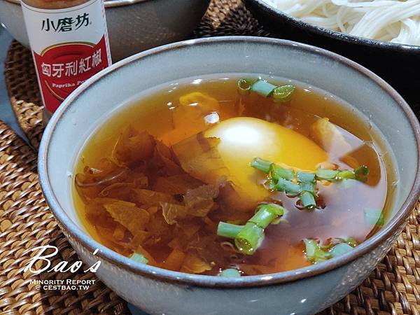昆布醬油加柴魚片煮出的醬汁,最後灑點蔥花。
