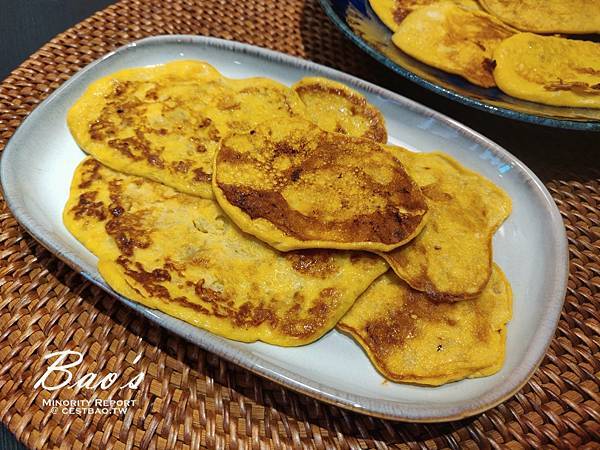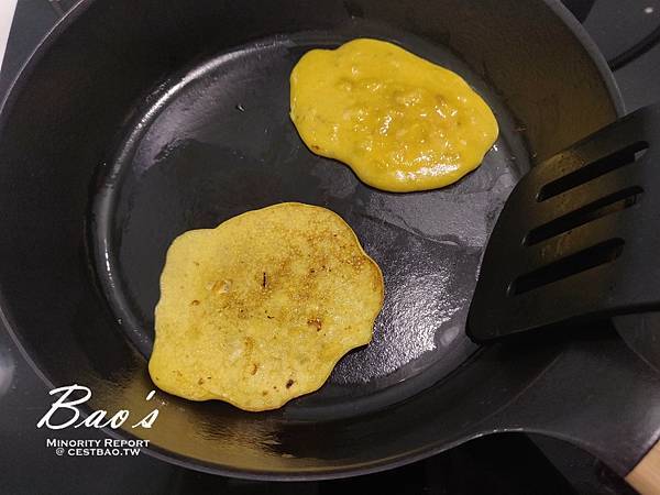 上網搜尋到的不外乎製成奶昔或香蕉蛋糕,但是懶人想用手邊現有的食材、又不需要過於麻煩的流程。因為有了先前的經驗,想往pancake的方向思考: