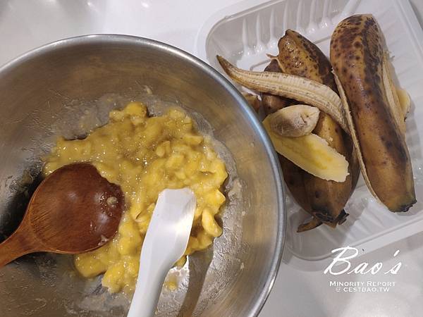這回的香蕉比較小支,所以自己調整食譜少一顆蛋,不過最後只加了兩顆。