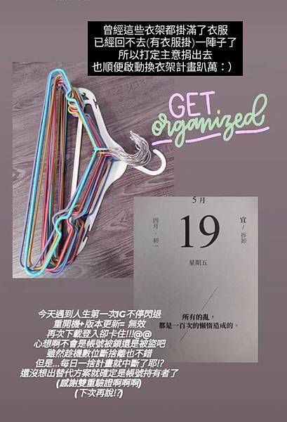 試著回想這段時間以來,跟著日曆每天一小步一小步地整理,還記得拋棄了哪些東西嗎?哎呀,有了紀錄就不需要倒背如流,但總有一些特別的事件會銘記在心。