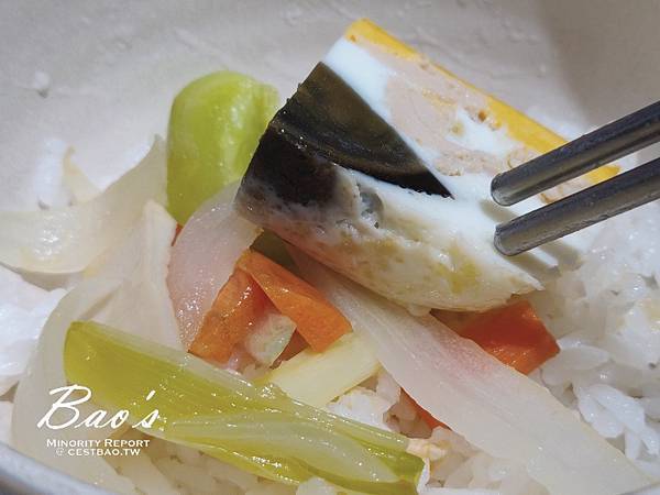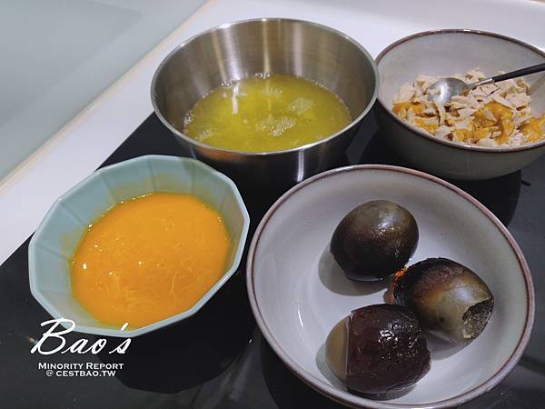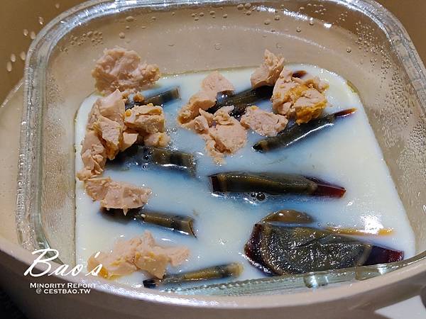 看到第一層蛋白變色之後,就可以開蓋加入鹹蛋囉。