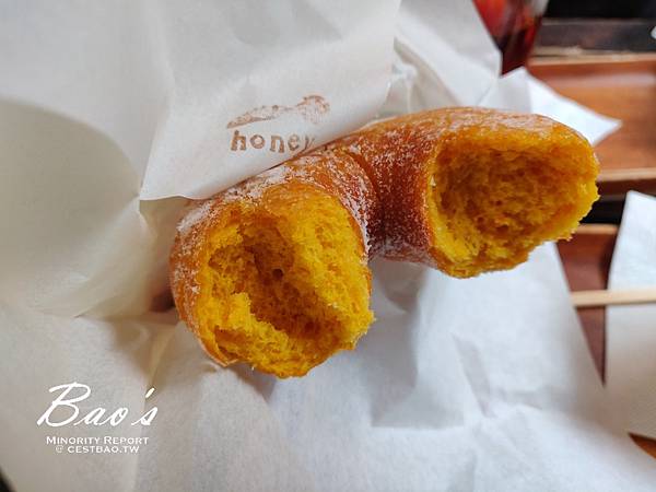 蜂蜜的清香與胡蘿蔔十分般配,從前只吃過蛋糕,沒想到放在鬆軟的甜甜圈也很恰當。