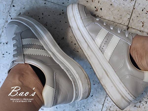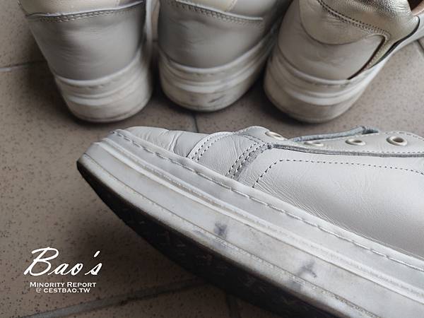 我曾以為是我的問題,譬如走路姿勢不良啦、坐姿習慣不好等等,但其他品牌的白鞋底卻不會這麼明顯地急速變髒。雖然這個觀察很主觀,也沒有數字佐證,但可以提出的對照組還不少哩:Lili Jan、Georgia Tsao、三十革、Dr. Kao、brunii。