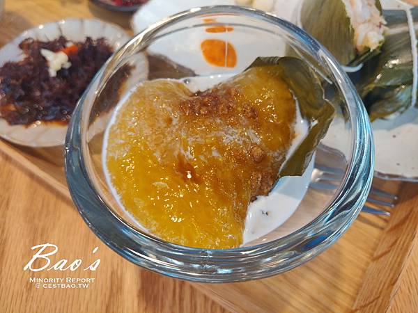 加入黑糖顆粒與(可能是)奶精調味的鹼粽,刷新了我腦中清一色搭配蜂蜜的兒時記憶,意外合拍對味。