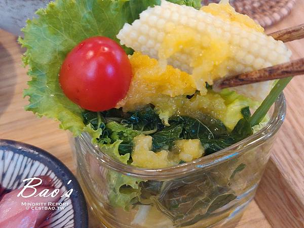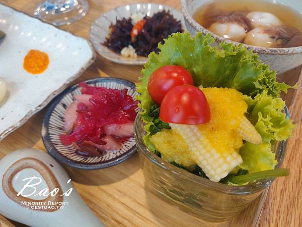 早就決定好要點野菜炊飯,卻被告知沒有煮飯!我們是第一組客人欸。順勢改成期間限定的粽夏海味套餐,好在也是想吃的。