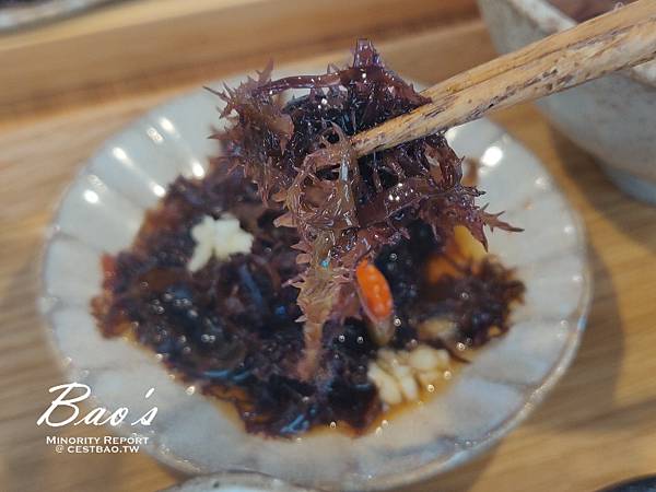 涼拌海菜是蜈蚣藻,爽脆的口感搭上微酸微辣的醬汁,在這種熱爆的天氣特別下飯(啊...沒有飯)