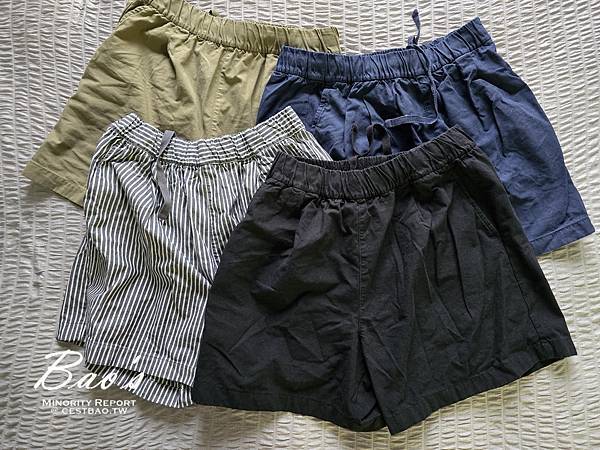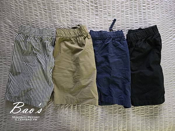 更何況,搭配Uniqlo這款素面短褲更好看吧,三色條紋與三色素面,隨意抓成套都合理,完全滿足不想太醜又不希望費腦的需求,厲害。