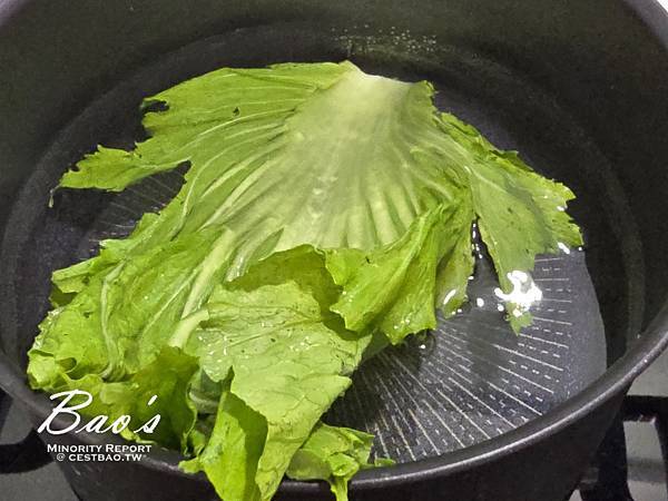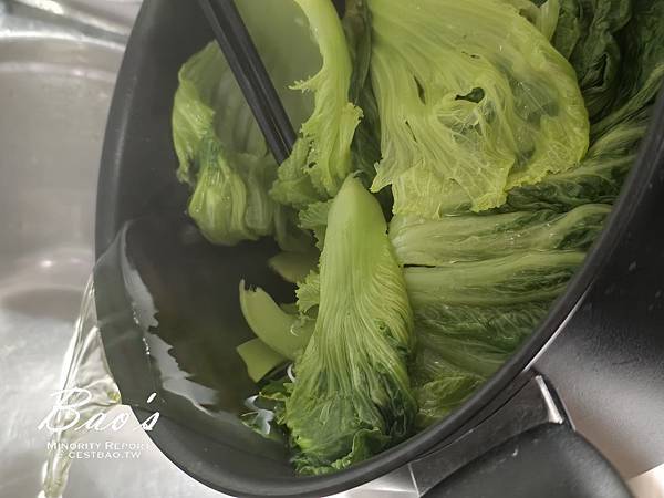 清洗之後一葉葉剝下來放入滾水,烹煮的過程中苦味也移轉到水裡啦。