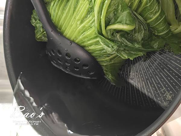 檢查每一根菜梗確實變軟、但尚未變爛的程度,小心倒掉第一桶苦水。