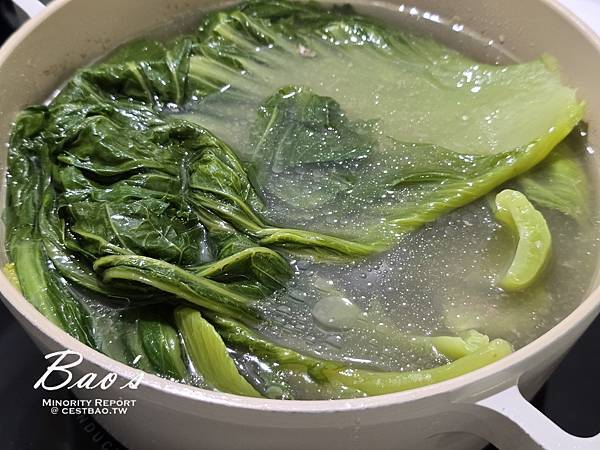 這顆包心芥菜真的不是普通的大,放了整鍋滿滿,乍看有點擔心沸騰時會溢出來,不過煮軟之後就消風了。